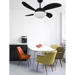Ventilador de Teto Volare Nero Preto VD42 Fly 4 Pás Preto O ventilador de teto é moderno e sofisticado para se adequar a decoração da sua casa, rústico ou discreto. De fácil integração o ventilador da Volare pode ser instalado na sala, sala de jantar, quarto ou escritório. Na cor preto e com 4 pás pretas, o ventilador de teto é potente e silencioso, perfeito para deixar os dias mais frescos. O ventilador de teto possui a luminária central, o que deixará o ambiente iluminado e aconchegante. Especificação técnica: Marca: Volare Modelo: VD42 NERO FLY Quantidade de Pás: 4 Estrutura das Pás: Pás em MDF laqueada Cor das Pás: Tabaco Corpo: Cromo Voltagem: 220v Acionamento: Controle de parede opcional controle remoto vendido separadamente Numero de Velocidades: 3 Potência do Motor: 127w Frequência: 60Hz RPM do Motor: 404 Área de Vazão: 2,17 m/s Selo Procel Economia de Energia : B Soquete de Lâmpada: 2 x E27 Luminária: Vidro Acetinado com Acabamento Fosco Ajuste de altura: Não Silencioso: Sim Função Exaustão e Ventilação: Sim Dimensões do ventilador: 48cm de altura x 105 de diâmetro Conteúdo da Embalagem: 1 Ventilador de teto 1 Controle de parede 1 Manual de instalação Observação: contrate um para instalação. Confira nossa linha completa de ventiladores para deixar o ambiente da sua casa ou escritório mais fresco e sofisticado. Ean: 7899120724254