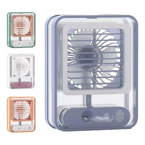 Ventilador De Ar Gelado Com Umidificador Com um design moderno e compacto, o Mini Ventilador Portátil é perfeito para quem está em movimento, além de ser muito silencioso. Ideal para uma noite de sono repousante ou de trabalho ou estudo ininterrupto. Melhor ainda, seu ventilador silencioso não será uma distração, garantindo que você permaneça focado, tranquilo e produtivo. Carregamento USB, e com três níveis de velocidade, este ventilador ajuda a resfriar, umidificar e purificar para obter ar fresco e limpo a qualquer hora, em qualquer lugar. Recomenda-se o uso de água gelada ou cubos de gelo para um melhor efeito de resfriamento. O ventilador possui uma seleção livre de direção do vento. O ângulo pode ser ajustado livremente para atender a diferentes posições e aproveitar a brisa. Além de conter uma luz interna, de uso opcional, que deixa o ambiente muito agradável.