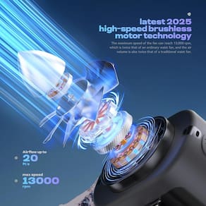 - [Ventilador de cintura portátil totalmente atualizado] Este ventilador de cintura de ponta apresenta a mais recente tecnologia de motor sem escovas 2025, alcançando impressionantes 13.000 RPM — o dobro da velocidade dos ventiladores de cinto tradicionais. Projetado com 9 lâminas espirais e uma estrutura simplificada em forma de foguete, minimiza a resistência do ar, proporcionando um fluxo de ar mais focado e poderoso a velocidades de até 6 m/s. Com um simples toque no interruptor, você pode desfrutar de uma brisa instantânea e refrescante que refresca você de forma eficiente, tornando os dias quentes de verão mais confortáveis.