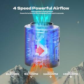 - [Fluxo de ar potente de 4 velocidades] O ventilador de cinto tem 4 velocidades de vento ajustáveis, que podem ser alteradas livremente de acordo com o calor. A velocidade de 6100 rpm (1ª marcha), 9370 RPM (2ª marcha), 11.450 rpm (3ª marcha), 13.000 rpm (4ª marcha) e a velocidade da primeira e segunda marchas são equivalentes ao nível mais alto de outros ventiladores. O soprador de ar potente e fresco mantém você fresco durante os dias quentes - a qualquer hora, em qualquer lugar. Observações: os níveis de ruído variam de acordo com a velocidade do ventilador (baixo: 37 dBA alto: 52 dBA)