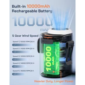 - Bateria de longa duração - Este ventilador de cintura portátil recarregável é alimentado por uma bateria de 10000mAh, fornecendo até 30 horas de resfriamento. O display LED mostra a velocidade do ventilador e a duração da bateria, ideal para quem usa o ventilador de cintura o dia todo.