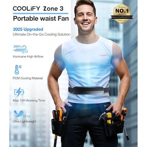-?Tecnologia de resfriamento revolucionária | Novo material de absorção de calor?Ao contrário dos ventiladores de cintura comuns, o CooliFy ZONE 3 apresenta um anel inovador de material de resfriamento (PCM) que pode reduzir a temperatura da pele em 60° F em segundos. Pode ser utilizado tanto em roupas internas quanto externas, seu ajuste ergonômico pode se agarrar confortavelmente à pele, absorvendo o calor por meio da liquefação do material e liberando energia de resfriamento à medida que se solidifica, mantendo continuamente um conforto estável de 60° F~ O design do anel removível permite uma limpeza fácil. Você apreciará o fascínio da nova tecnologia de resfriamento.