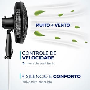 Com inclinação vertical regulável e controle de velocidade com 3 opções Máxima Turbo, Média Conforto e Mínima Silencioso , você pode adequar o vento às suas necessidades, proporcionando um maior conforto térmico.