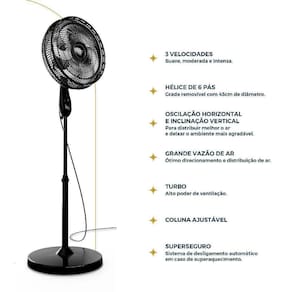 Além disso, a grade removível de 48cm facilita a limpeza e manutenção. Um ventilador completo, seguro e eficiente, ideal para refrescar seus dias com conforto e praticidade.