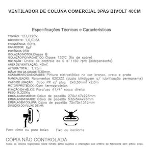 Ventilador de Coluna Comercial 3 Pás Q500C 50cm Qualitas Bivolt