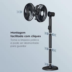 Este ventilador oferece uma montagem em cliques, permitindo que a hélice e a grade sejam desmontadas quando o produto não está em uso, o que facilita a limpeza. O produto também pode ser desmontado para ser armazenado de forma compacta e facilitar a organização.
