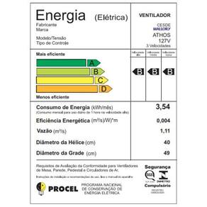 O ventilador de coluna Athos com potência de 140W, grade em sistema especial TS e novos cliques que facilitam na hora e exclusiva hélice de 15 pás, possui eficiência energética B. Tem ajuste de altura, novo botão de oscilação horizontal proporcionando maior praticidade, inclinação vertical e grade removível para limpeza. A nova linha de ventiladores Mallory de 40Cm oferece o maior fluxo de ar do mercado na categoria, com um funcionamento muito silencioso.