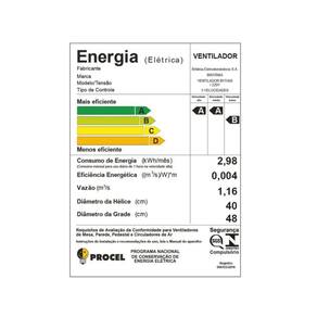É muito poder de ventilação com a Tecnologia Maxx Force! Hélice de 6 pás com 40cm, leva muita vazão de ar e o melhor, consumindo pouca energia, já que possui classificação energética “A” e com o mínimo de ruídos.