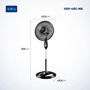 O Ventilador de Coluna Super Power VSP-40C-NB da Mondial possui 40 cm de diâmetro e hélice com 6 pás, garantindo um ambiente mais refrescante e agradável. Com coluna ajustável entre 1,19 e 1,50 metros, o aparelho permite ajuste da altura do vento. O sistema de ventilação da Mondial apresenta baixo nível de ruído, assegurando o silêncio necessário para uma excelente noite de sono. Além disso, conta com 3 variações de velocidade, Máxima Turbo, Média Conforto e Mínima Silencioso. Aproveite a qualidade que só a Mondial oferece!