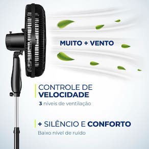 - CONTROLE DE VELOCIDADE: As 3 opções de velocidade permitem adequar o vento à sua necessidade: Máxima Turbo, Média Conforto e Mínima Silencioso.