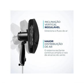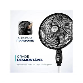 O ventilador também apresenta diversas opções de velocidade para atender às suas necessidades: máxima Turbo, média Conforto e mínima Silencioso. E, para um direcionamento ideal do fluxo de ar, a inclinação vertical regulável é perfeita. Além disso, a grade frontal removível oferece mais facilidade na limpeza das hélices, o que simplifica a lavagem e a remoção de poeira, garantindo melhor qualidade do ar.
