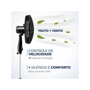 Descricao O ventilador de coluna Super Power VSP-40C-B possui 40 cm de diametro e helice com 6 pas, garantindo um ambiente mais refrescante e agradavel. Com coluna ajustavel entre 1,19 e 1,50 metros, o aparelho permite ajuste da altura do vento. O sistema de ventilacao da Mondial apresenta baixo nivel de ruido, assegurando o silencio necessario para uma excelente noite de sono. VENTO SUPER POWER: A linha de Ventiladores Super Power possui 40cm de diametro e 6 Pas. O design, aliado a potencia, promove maior intensidade do vento e e garantia de um ambiente fresco e agradavel. COLUNA AJUSTAVEL: Possui regulagem de 1,19 a 1,50 metros, permitindo o ajuste ideal da altura do vento. MAIS SILENCIO E CONFORTO: O sistema de ventilacao da Mondial apresenta baixo nivel de ruido, assegurando o silencio necessario para momentos de concentracao e uma excelente noite de sono. MAIOR DISTRIBUICAO DE AR: O Sistema Oscilante Continuo amplia o raio de alcance do vento no ambiente, permitindo uma distribuicao de ar mais eficiente nos comodos da casa. INCLINACAO VERTICAL REGULAVEL : Para um direcionamento ideal do fluxo do ar. CONTROLE DE VELOCIDADE: As 3 opcoes de velocidade permitem adequar o vento a sua necessidade: Maxima Turbo, Media Conforto e Minima Silencioso. FACILIDADE NA LIMPEZA : A grade frontal removivel oferece mais facilidade na limpeza das helices, o que simplifica a lavagem e a remocao de poeira, e garante melhor qualidade do ar. ALCA DE TRANSPORTE + PORTA-FIO: Alem do design compacto, a alca traseira permite que o ventilador seja transportado entre os comodos da casa com facilidade. Com o porta-fio embutido, voce armazena o fio eletrico dentro do aparelho apos o uso. *Imagens meramente ilustrativas. Especificacao Tecnica Cor: Preto Voltagem (Tensao): 220V Itens inclusos: 01 Ventilador - Manual de instrucoes Potencia: 140W Dimensoes do produto: 150cm x 45cm x 41cm Numero de velocidades: 3 velocidades Quantidade de pas: 6