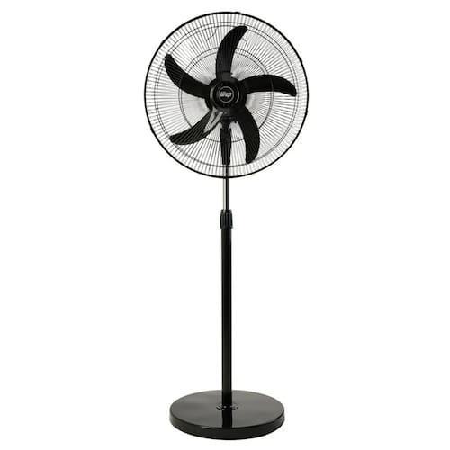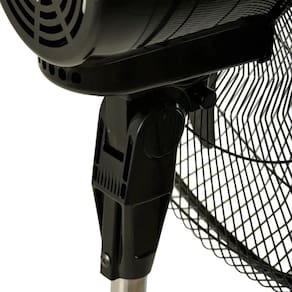 Componentes: Duas grades de proteção; Hélice com 5 pás; Controle de 3 velocidades; Trava de regulagem de inclinação; Botão acionador de oscilação; Base de coluna com regulagem de altura.