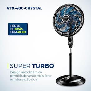 O ventilador Super Turbo VTX-40C-Crystal possui 40 cm de diâmetro e hélice de 8 pás, o que promove uma circulação de ar mais eficiente e garante mais frescor ao ambiente. Com coluna ajustável entre 1,19 e 1,50 metros, o ventilador permite ajuste da altura do vento. Além disso, o sistema de ventilação alia a potência para refrescar ao baixo nível de ruído, proporcionando o silêncio necessário para uma excelente noite de sono. Saiba mais sobre o VTX-40C- Crystal da Mondial: