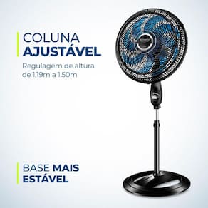 COLUNA AJUSTÁVEL: Possui regulagem de 1,19 a 1,50 metros, permitindo o ajuste ideal da altura do vento.