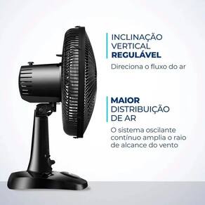 Descrição O Ventilador de Mesa Mondial VSP-30-B é um equipamento confiável e prático para garantir um ambiente mais fresco e agradável nos dias quentes. Com sua potência e eficiência, proporciona um fluxo de ar constante e refrescante, enquanto seu design compacto e seu modelo de mesa permite que seja facilmente posicionado ou transportado para qualquer espaço de forma rápida e fácil. CARACTERÍSTICAS: - Potência e eficiência para um fluxo de ar constante e refrescante - Design compacto e versátil, adequado para diferentes ambientes - Operação silenciosa para um ambiente tranquilo - Inclinação ajustável para direcionar o fluxo de ar conforme necessário ESPECIFICAÇÕES TÉCNICAS: Marca: Mondial Cor: Preto Modelo: VSP-30 Voltagem: 110V Potência: 60W Velocidades: 3 Diâmetro da Hélice: 30cm Número de pás: 6 Oscilante: Sim Tipo: Ventilador de Mesa DIMENSÕES: Altura: 49cm Largura: 35cm Comprimento: 24,5cm Peso: 1,670kg DICA DO MINEIRINHO: Posicione o Ventilador em uma superfície estável e nivelada para garantir seu funcionamento adequado e seguro. DÚVIDAS FREQUENTES: - Qual é a potência deste ventilador? A potência do Ventilador é de 60W, proporcionando um desempenho eficaz e econômico. - Como limpar este ventilador? Para limpar, desligue-o e desconecte da tomada. Use um pano macio e seco para limpar as pás e a grade. Evite o uso de água ou produtos químicos. - É possível ajustar a inclinação do ventilador? Sim, a inclinação do ventilador pode ser ajustada para direcionar o fluxo de ar conforme necessário. - O ventilador é silencioso? Sim, este ventilador opera de forma mais silenciosa para proporcionar um ambiente tranquilo e agradável. ITENS INCLUSOS: 01 Ventilador de Mesa Mondial VSP-30 01 Manual de Instruções