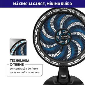 O Arno X-treme 9 possui uma velocidade máxima de 1400 rpm e uma vazão de 1,35 m³/s, proporcionando um fluxo de ar intenso. Com 160W de potência, ele oferece ventilação eficiente, mesmo em dias de calor extremo. O ventilador conta com 3 velocidades, que podem ser ajustadas conforme a necessidade: desde uma brisa suave até um vento mais forte.