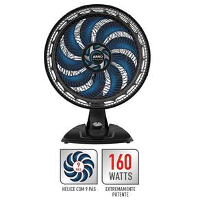 Cor: Preto e azul escuro Potência (Watts): 160W Consumo (kW/h*/mês): 127V: 4,50 kW/h*/mês / 220V: 4,38 kW/h*/mês Vazão: 1,35 m³/s Velocidade de Rotação Máxima (rpm): 1400 Diâmetro da Grade (cm) 40 cm Profundidade da Grade (cm) 17,3 cm