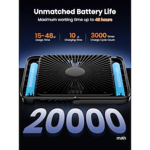 - Desempenho de resfriamento poderoso e eficiente: equipado com uma bateria recarregável de alta capacidade de 20000 mAh, permanece fresco o dia todo com até 15 ~ 48 horas de operação contínua com uma única carga completa. Suas configurações de 4 velocidades e design de 5 lâminas fornecem resfriamento poderoso, mas silencioso, tornando-o perfeito para escritórios, casas e aventuras ao ar livre