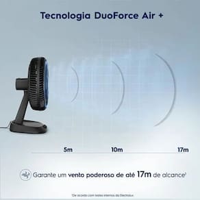 Tecnologia DuoForce Air+: Hélice com 6 pás e motor eficiente que garantem vento forte e de longo alcance.