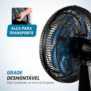 Alça de : Além do design compacto, a alça traseira permite que o ventilador seja transportado entre os cômodos da casa com facilidade.