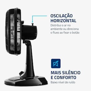Recursos Adicionais: Inclinação vertical regulável, função oscilante, alça de transporte e porta-fio.