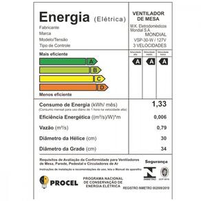 Ventilador de Mesa Mondial 6 Pás 30cm VSP-30B 60W - 110V