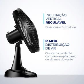 Como ele faz menos barulho, com qualquer uma das 3 velocidades, você dorme com ventinho e silêncio garantidos. Para ambientes mais amplos, você pode usar seu sistema oscilante. Já sua inclinação vertical regulável direciona o fluxo de ar para cima ou para baixo. Como a grade frontal é removível, ele ainda é fácil de montar e desmontar para limpeza.