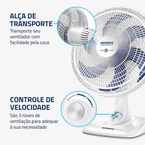 Ventilador: 40 cm Quantidade de Pás: 6 Tipo de ventilador: de mesa Velocidades: 3 Oscilação: sim