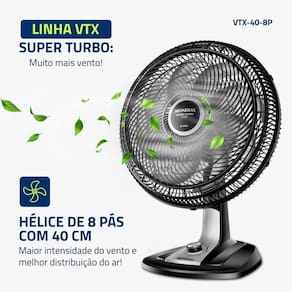SUPER TURBO: MUITO MAIS VENTO!: O 1 ventilador de 8 pás do ! O design aerodinâmico e de alta performance do VTX Super Turbo proporciona maior intensidade do vento e melhor de ar. O resultado é um ambiente mais fresco e arejado!