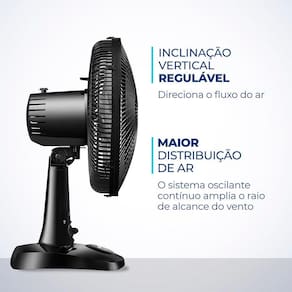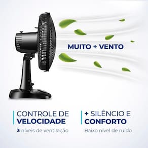 Características Principais: Altura: 49,0cm Largura: 35,0cm Comprimento: 36,5cm Peso: 1.6 Kg Alimentação: Disponível em 110V ou 220V Cor: Preto Marca: Mondial Nível de Ruído: Baixo Número de Pás: 6 Pás Potência: 60W Tipo do Ventilador: Ventilador de Mesa Número de Velocidades: 3
