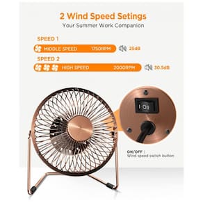 Com ajuste de rotação de 360 graus e duas velocidades, ele é compacto com um tamanho de 18,7 x 18,7 cm, perfeito para qualquer mesa ou até mesmo para ser fixado na parede. Conta também com pés de silicone macio que evitam deslizamentos e ajudam a reduzir o ruído do ventilador.
