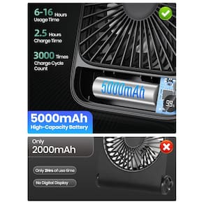 - Atualize a bateria de 5000mAh — Mantenha a temperatura o dia todo com até 6 a 16 horas de operação contínua com uma única carga completa. A bateria recarregável integrada de 5000mAh mantém você atualizado, esteja você em ambientes fechados ou em viagens, e o suporte dobrável do ventilador torna o ventilador de mesa fino TOPK mais fácil de transportar