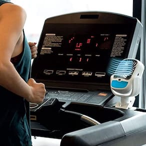 O mini ventilador possui dois jatos de resfriamento umidificante. Proporcionando um ambiente mais fresco. Além de ser giratória, podendo mover para qualquer lado que precisar.
