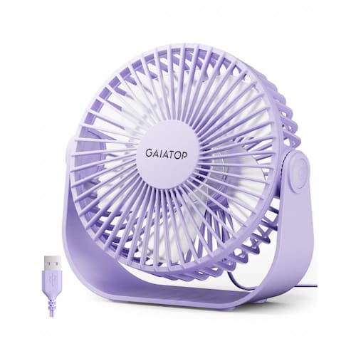 O Ventilador de Mesa USB Gaiatop modelo TF55B oferece 3 velocidades ajustáveis: velocidade 1 (suave, 3,1 m/s, 1500 RPM), velocidade 2 (alta, 4,0 m/s, 2000 RPM) e velocidade 3 (forte, 4,8 m/s, 2500 RPM), controladas por botões touch. Equipado com motor atualizado e 5 lâminas de plástico, proporciona fluxo de ar potente com ruído máximo de 40 dB para operação silenciosa. Alimentado via USB com 5 V e 5 W, compatível com PC, laptop, power bank, adaptador AC ou carregador automotivo, inclui cabo de 1,5 m.