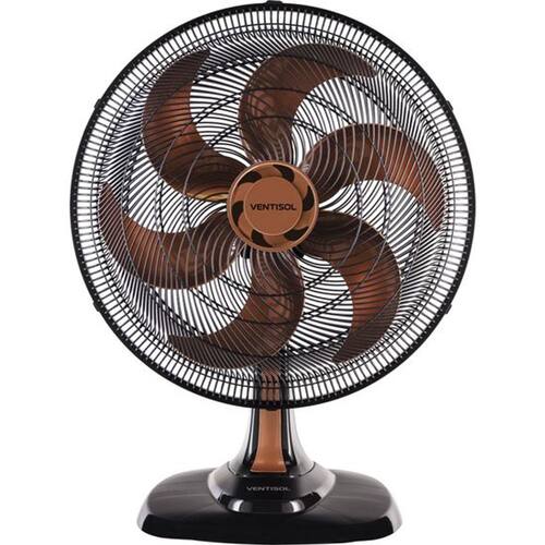Descrição do Produto: O Ventilador de Mesa Ventisol Turbo 6 une alta potência, design sofisticado e excelente desempenho para proporcionar frescor e conforto em ambientes amplos. Com um imponente diâmetro de 50 cm e acabamento na elegante cor bronze, ele combina funcionalidade e estilo.