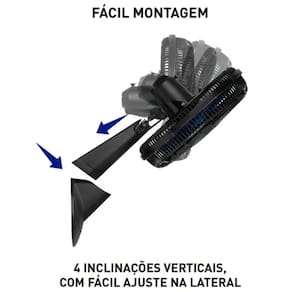 Velocidades variáveis Possui 9 pás para uma potência maior e 3 tipos de velocidades para atender a cada necessidade. Na Velocidade 1, possui o modo Silêncio/Dormir: Vento silencioso e moderado para uma noite de sono tranquila. Na Velocidade 2, possui o modo Eco Fresh: economiza 20% da energia, podendo assim manter ligado o ventilador o dia todo sem preocupações. E na velocidade 3 possui o modo Turbo Silencioso: Conforto e clima agradável de imediato, vento mais potente e silencioso com 80% de oscilação horizontal e 4 inclinação vertical.