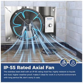 Projetado para garantir uma melhor circulação de ar, o VentirPro 720S é ideal para espaços como porões, sótãos, garagens e outras áreas com alta umidade. Fabricado em aço inoxidável de alta resistência, o ventilador conta com um motor axial classificado com IP-55, que oferece resistência a líquidos e poeira, garantindo maior durabilidade e desempenho em ambientes úmidos.