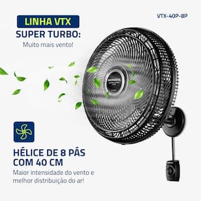 - SUPER TURBO: MUITO MAIS VENTO: O 1° ventilador de 8 pás do Brasil! O design aerodinâmico e de alta performance do VTX Super Turbo proporciona maior intensidade do vento e melhor distribuição de ar. O resultado é um ambiente mais fresco e arejado!