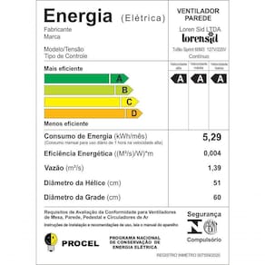 Ventilador de Parede Tufão Sprint 60Cm Loren Sid Preto Bivolt Ventilador de Parede Loren-Sid Tufão Sprint 60cm M3. Marca : Loren-Sid Garantia : 12 meses Ventilador : De Parede Diâmetro da Grade : 60cm Diâmetro da Hélice : 52cm Potência : 155W Frequência : 60 Hz Rotação : 1250~1400. Vazão : (m3/s) 1,23 ~1,38