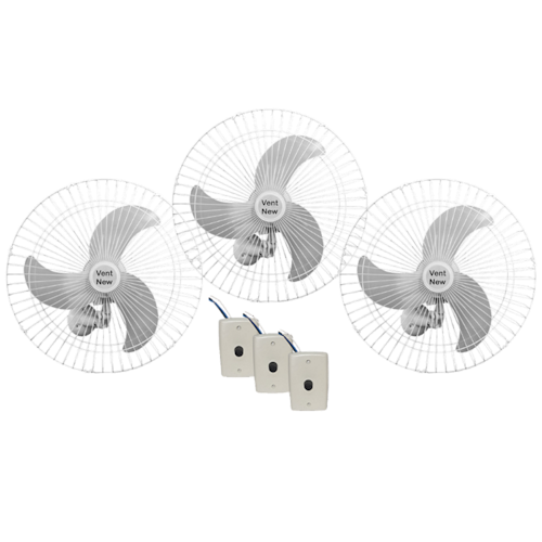 Kit composto de 3 Ventiladores Oscilantes de Parede Vent New 60cm Bivolt 200w Grade Aço Branco Código 00112