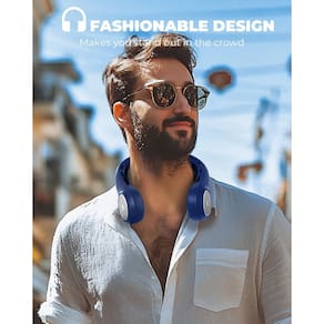 - ??Design de fone de ouvido sem as mãos e moderno? O ventilador de pescoço portátil foi projetado como um fone de ouvido para liberar suas mãos; o estilo da moda faz você parecer legal na multidão. O ventilador de pescoço pendurado é leve, fácil de transportar.