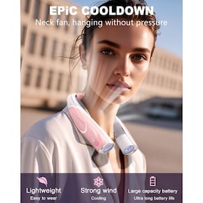 - Tecnologia de resfriamento surround de 360°: ao contrário dos ventiladores comuns, o ventilador de resfriamento de pescoço oferece fluxo de ar total com aberturas de canal duplo, garantindo que seu rosto e pescoço permaneçam frescos de todos os ângulos. Ótimo para clima quente, trabalhos ao ar livre ou espaços internos abafados.
