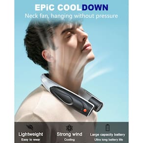 - Tecnologia de resfriamento surround de 360°: ao contrário dos ventiladores comuns, o ventilador de resfriamento de pescoço oferece fluxo de ar total com aberturas de canal duplo, garantindo que seu rosto e pescoço permaneçam frescos de todos os ângulos. Ótimo para clima quente, trabalhos ao ar livre ou espaços internos abafados.