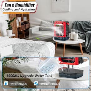 - Função de nebulização atualizada: o ventilador de nebulização para o exterior está equipado com um tanque de água de 1600 ml com 2 configurações de pulverização ajustáveis: 100 ml/h, 200 ml/h. Quando a névoa de água pulveriza na pele, diminui o calor da superfície da pele; se você adicionar gelo, haverá mais frio e diminuirá ainda mais a temperatura ambiente. Esse efeito de resfriamento duplo permite que você aproveite um ar mais claro e frio como estar nas montanhas e riachos, e diga adeus à secura e ao calor