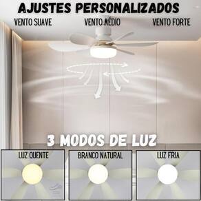 Ventilador de teto 3 velocidades potente com controle 60w Cor: branco imagine estar em casa nesse calor e poder sentir brisa suave e reconfortante, ajustada perfeitamente ao seu gosto. Este ventilador, com sua fácil instalação, é a resposta para suas necessidades de ventilação e iluminação. com ajustes personalizados em três níveis de vento - suave, médio e forte - este ventilador se adapta ao seu momento, seja para uma leve brisa em uma tarde tranquila ou para uma ventilação vigorosa durante dias mais quentes. além disso, ele oferece três modos de luz para combinar com a atmosfera de qualquer cômodo da sua casa. Desde o aconchego da luz quente até a vivacidade da luz fria, você pode criar o ambiente perfeito para relaxar, trabalhar ou socializar. mas as vantagens não param por aí com a função de temporizador, você pode programar o ventilador para funcionar nos horários que desejar, economizando energia e evitando interrupções no seu sono. E o melhor de tudo: a instalação é uma brisa basta rosqueá-lo em um bocal de tomada de luz padrão - sem ferramentas, sem parafusos, sem fiação complicada. Faça você mesmo e desfrute de 60w de potência e conforto. ------------------ ------------------ como é feita a instalação deste ventilador R: basta rosqueá-lo em um bocal de tomada de luz padrão, sem a necessidade de ferramentas, parafusos ou fiação. quais são os modos de luz oferecidos por este ventilador R: luz branca natural, luz quente e luz fria. o ventilador possui alguma função de economia de energia R: sim, ele pode ser com temporizador para programar o tempo de funcionamento, economizando energia. quais são os ajustes de vento disponíveis no ventilador R: vento suave, vento médio e vento forte. ------------------ Especificações ------------------ Potência: 60w. Função de temporizador. 3 ajustes de luz. 3 intensidades de vento. Silencioso. Altura: 18.5cm. Largura: 52 cm. ------------------ Conteúdo ------------------ 1x ventilador. 1x controle. 1x manual. Anúncio referente a ventilador com l mpada Acessórios que ambientam as fotos não inclusos. ------------------ Apresentação: ------------------ - qualidade garantida. - atendimento qualificado. - enviamos para todo o brasil. - compra garantida. - despachamos em até 1 dia útil após confirmação do pagamento Garantimos a devolução por arrependimento em até 7 dias, após o recebimento e de 15 dias contra defeitos de fabricação. Marca: Não Informado