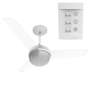 O Ventilador de Teto Aliseu na cor cristal, integra o modelo Alisclean de alto desempenho de ventilação, com um ruído baixo. Ideal para você dormir mais tranquilo nas noites de calor.Pode ser instalado em diversos ambientes, pois possui uma ótima ventilação, evitando o ar seco e deixando o clima mais agradável.Com o Alisclean você vai economizar espaço, ter um local de refúgio do calorBenefíciosEste produto acompanha controle de parede produzido especificamente para não gerar ruídos no motor, mantendo-o menos aquecido em velocidade mínima e média. Além de não gerar interferência eletromagnética.Possui a velocidade lenta, média e rápida, com função de ventilação e exaustão.CaracterísticasO Ventilador de Teto Aliseu passa por testes rigorosos de fábrica para garantir a qualidade do produto. Possui 3 pás, com rotação máxima de 450 RPM, com voltagem de 220V.A potência máxima das lâmpadas é de 25W.Acompanha1 Ventilador de TetoSuporte de Fixação com buchas e parafusos1 Controle de Velocidade de parede1 Manual de InstruçõesEspecificações TécnicasRotação Máxima: 450 RPMDiâmetro: 90CMNúmero de Pás: 3Vazão Máxima de Ar: 1,87 m/sÁrea de ventilação sugerida: 20 mVoltagem: 220VPotência do Motor: 130 WattsPotência Máxima das Lâmpadas: 2 X 25 WattsIluminação: Duas lâmpadas eletrônicas compactas ou LED Não inclusas .Controle de parede: Controle da velocidade lento, médio, rápido , sentido de giro ventilação ou exaustão e acendimento da luminária.