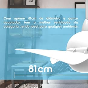 Com mais de 20 anos de historia, a ALISEU conta com diversos modelos de ventiladores de teto em seu catalogo. Elegantes, modernos e luxuosos, assim são seus ventiladores, produzidos com materiais de qualidade que visam durabilidade, eficiência e economia de energia. A variedade de tamanhos e design fornece varias opções de escolha, ajustando-se a necessidade de cada ambiente. O Modelo Smart possui o selo Procel Triplo A e vem pré-montado de fabrica. Especificações técnicas:Marca: AliseuModelo: SmartCor: BrancoVoltagem: 127 VPotencia: 130 Watts Rotação Maxima: 450 Rpm. Pás: 3 Pás Plásticas Branca.Diâmetro: 81Cm.Vazão Máxima de Ar: 1,75 M/S.Área de ventilação: 22M.Potência Máxima das Lâmpadas: 2x de 25Watts cada.Iluminação: 2 Lâmpadas eletrônicas compactas ou LED NÂO INCLUSAS .Comandos: Chave Fixa de parede com controle de velocidade lento, médio e rápido , sentido de giro ventilação e exaustão , acionamento da luz.Materiais Empregados: Termoplásticos, metais e componentes eletrônicos.