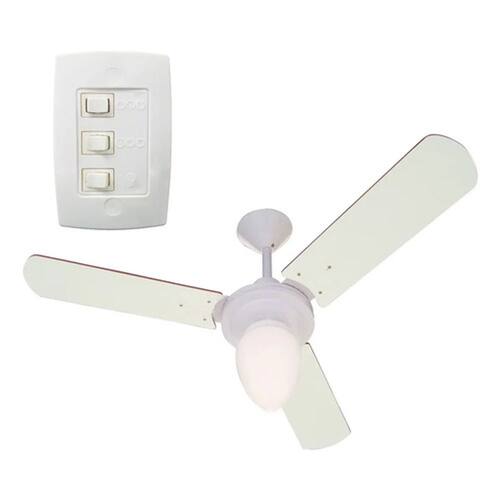 Ventilador de teto branco com 3 pás, modelo da marca Ventisol. Possui soquete do tipo E27 e material de plástico. Voltagem de 127V e potência de 130W. Garantia de 12 meses e certificação classe A de acordo com o Procel. Produto nacional de alta qualidade e eficiência energética. Ideal para manter o ambiente fresco e confortável. Com design moderno e elegante, o Ventilador de Teto da Ventisol é a escolha perfeita para sua casa ou escritório.