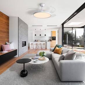 O ventilador de teto Britania Lotus Bivolt branco combina tecnologia, conforto e design moderno. Com pas retrateis que se abrem ao ligar, conta com seis velocidades, controle remoto e iluminacao LED com tres tonalidades. Ideal para ambientes residenciais que exigem ventilacao eficiente com estilo.